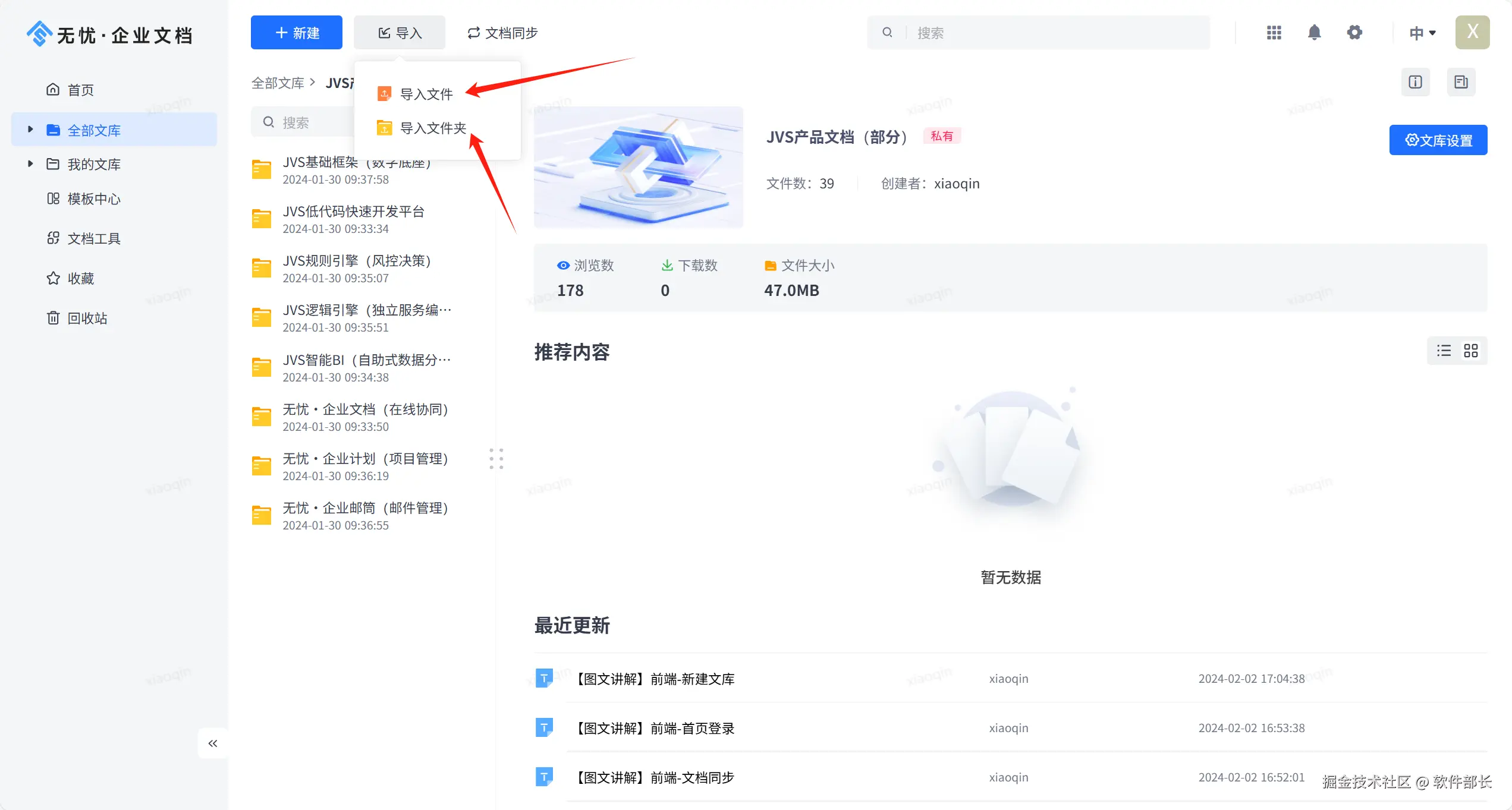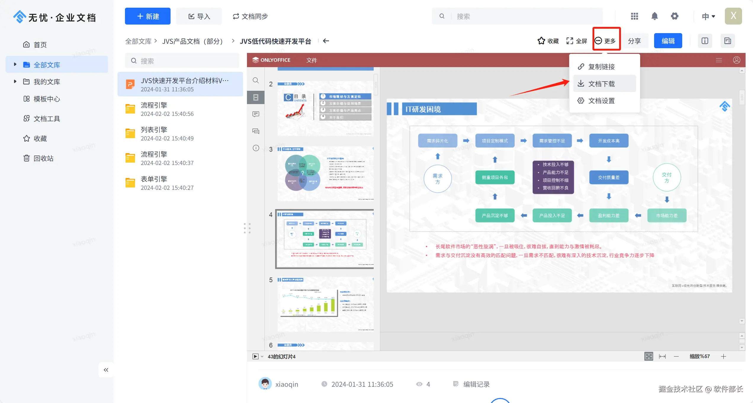 针对企业在知识管理上存在的这些问题,那么就需要创建文档管理系统对相关知识进行管理,于是便有了JVS的“无忧·企业文档”出现。