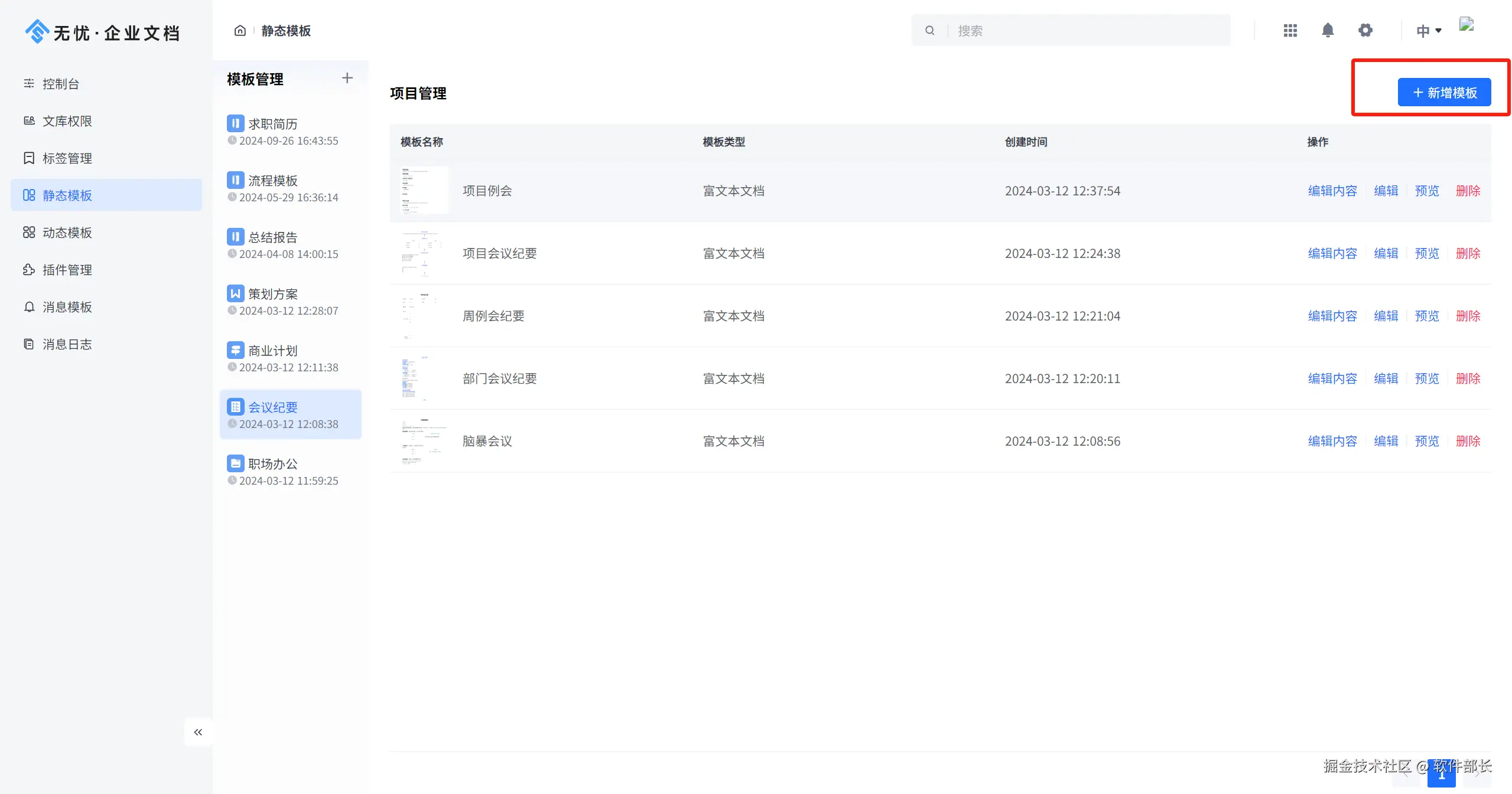 模板管理,系统提供静态和动态模板,支持自定义上传不同格式的模板。