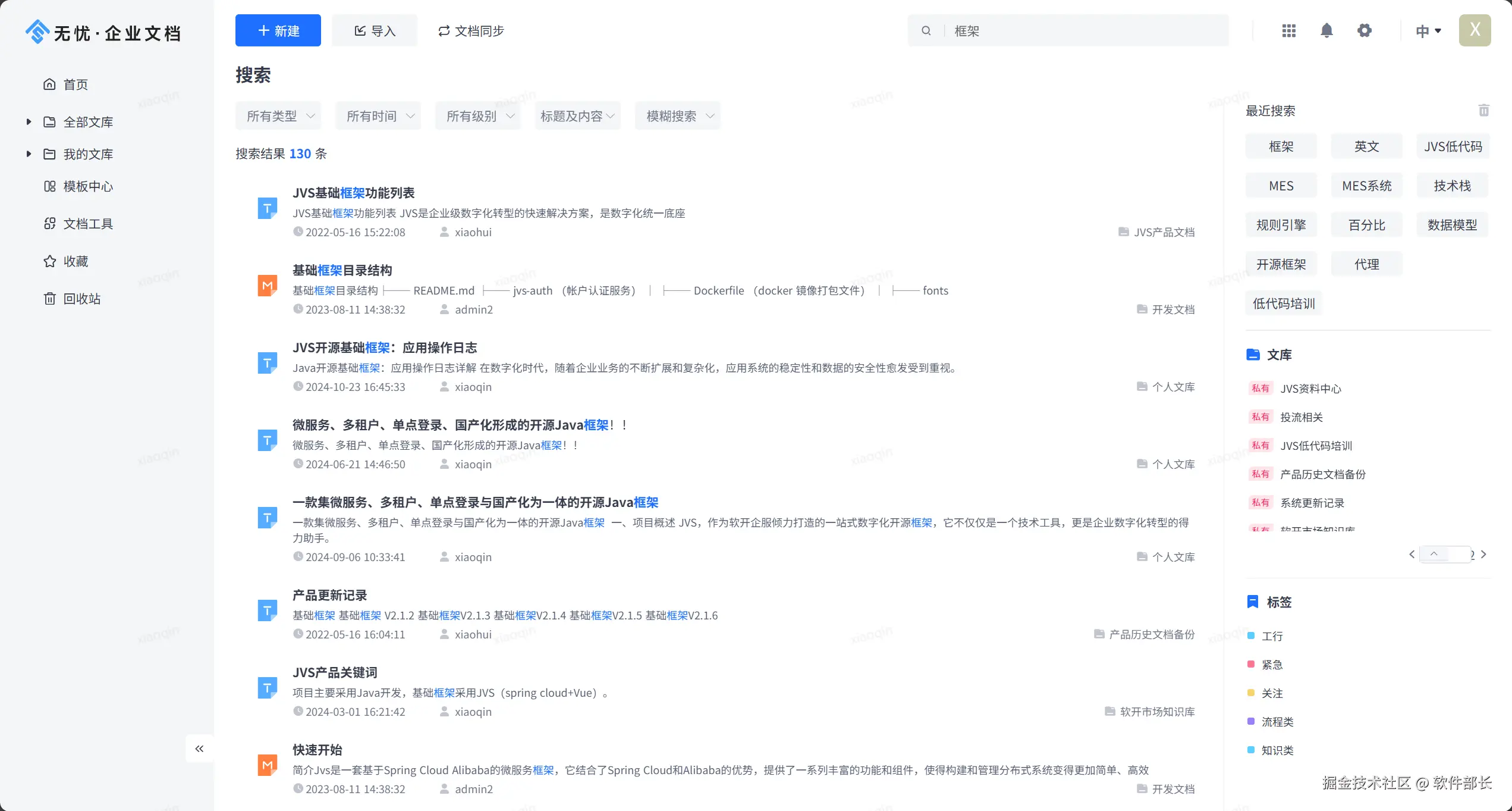全文检索:支持关键词检索、标签、文库类型、时间等分类检索等多种检索方式。
