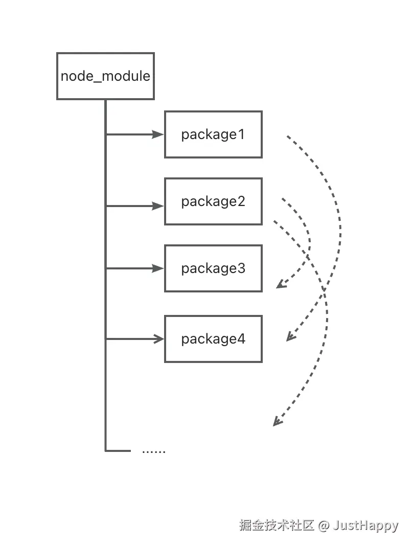早期的npm其实是没有这个问题的,哪个时候软件包安装依赖时遵循树状结构,就是安装一个包会在其文件夹内部的node_module中安装当前这个包的依赖,就像下面这样。在这种情况下你自然调用不了在自己项目根目录下没有声明的。