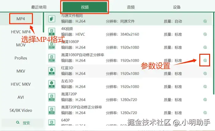 第三步: 点击【···】按钮,选择输出格式为MP4。