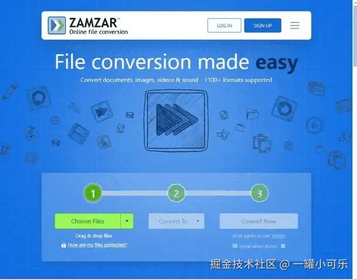 Zamzar可以看作是一个免费的音频提取器,即在线音视频文件处理网站。该网站可以上传多种类型文件进行格式间的相互转换,但存在输出质量较低的缺点,对音频输出质量要求不高的用户可以考虑使用Zamzar。