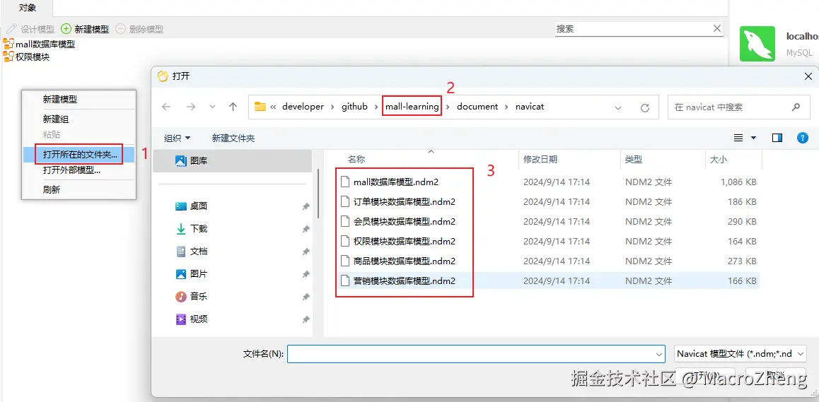 - 如果你想打开设计好的数据库模型的话,可以右键点击