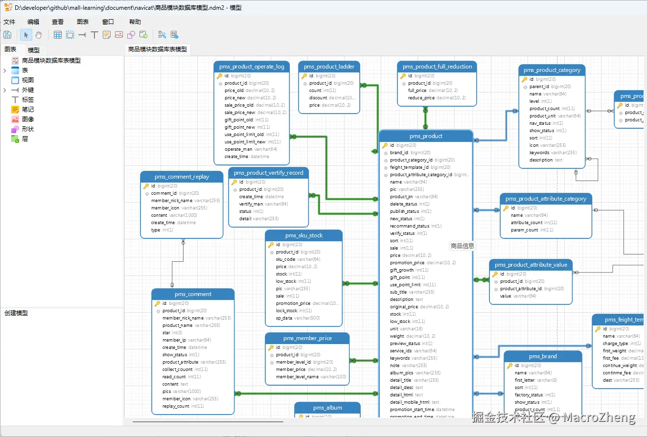 - 这里是mall电商实战项目商品模块的数据库表设计模型,效果还是非常不错的;