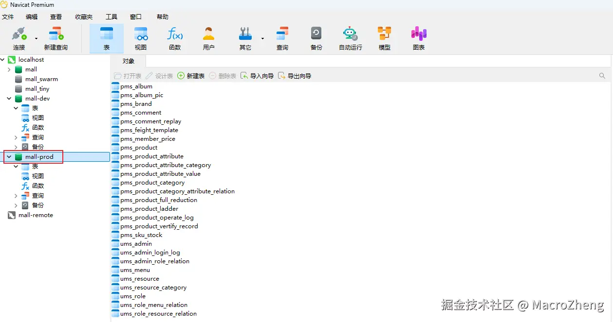 在我没发现Navicat的数据库设计功能之前,我会使用PowerDesigner这类数据库设计工具先设计好数据库,再通过Navicat导入数据库表。其实Navicat里早已内置了数据库设计工具,这里就以我的mall电商实战项目为例,来介绍下它的数据库设计功能。