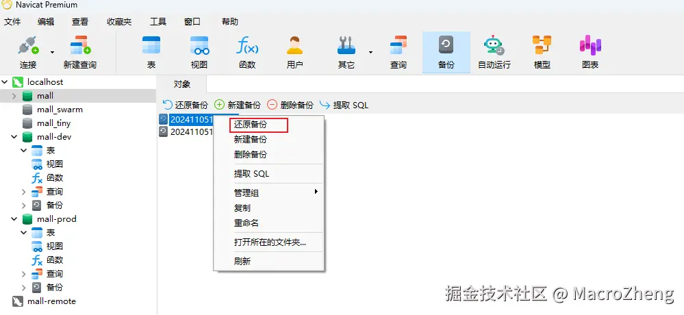 - 如果你想还原备份的话,选中备份后右键点击