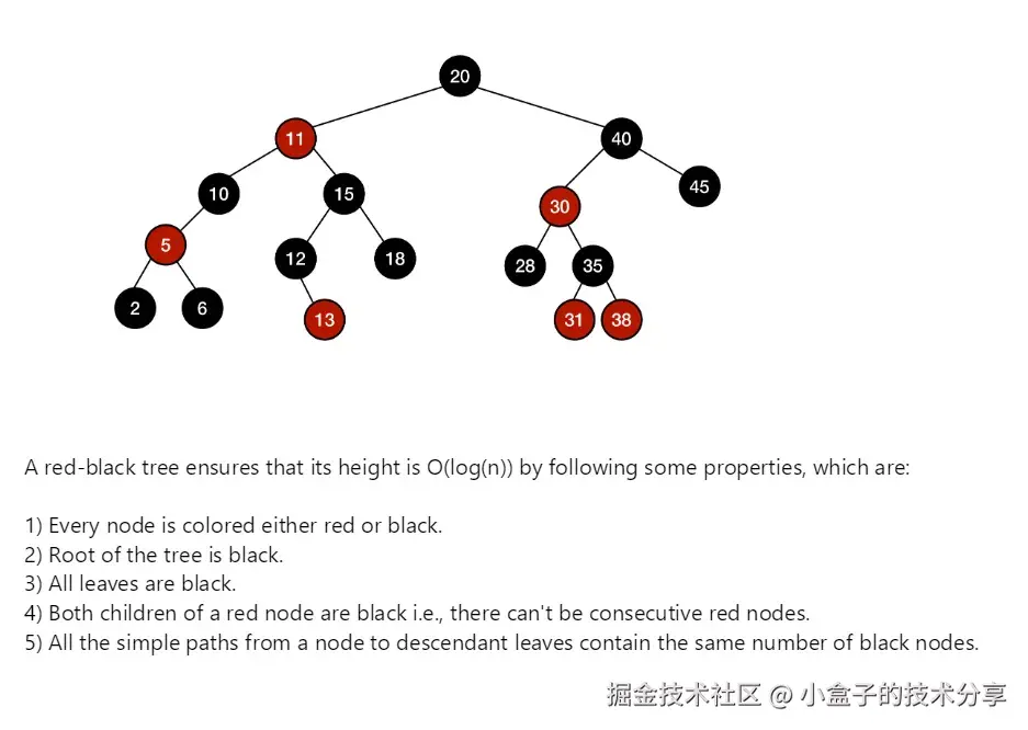 二叉搜索树通过将节点分配颜色(红色或黑色)并遵循一组确保其保持平衡的规则来维护其平衡: