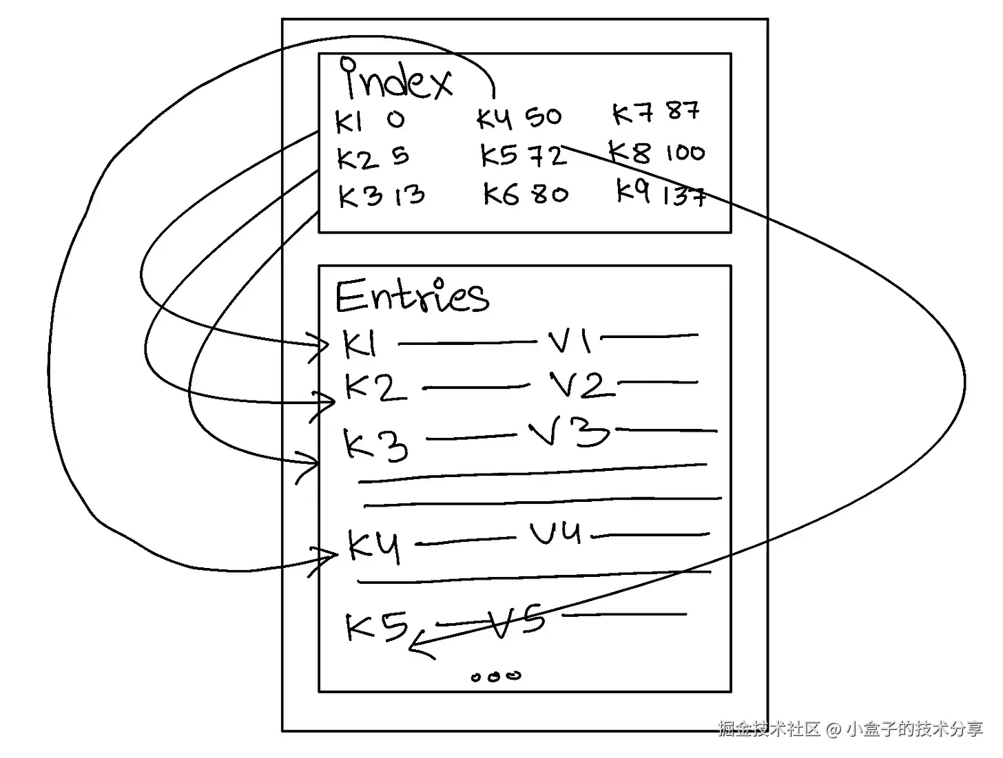 SSTables 根据键的顺序存储数据。每个 SSTable 由一系列键值对组成,其中键是有序的。一旦创建 SSTable,它就不会被修改。相反,新的数据更新会写入新的 SSTable。