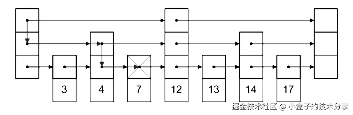 跳表(Skip List)是链表的一种扩展结构,通过引入多级链表来加速查找、插入和删除操作。它的工作原理是允许通过“跳跃”多个链表元素来快速定位到目标节点,这通常是通过从父级链表向下遍历到合适的子级链表来实现的。这种结构类似于二叉搜索树,但具有一定的随机性,通常在效率和简单性上都有不错的表现。