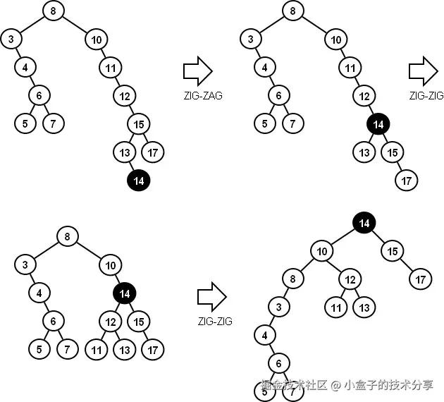 伸展树是一种在数据访问频率不均时具有优秀性能的二叉搜索树。树在查找、插入和删除操作后自动调整。在树中访问一个项目后,树会重新排列,使访问的项目移动到顶部(根)。这使得对该项目的未来访问更快。伸展树在缓存中特别有用。