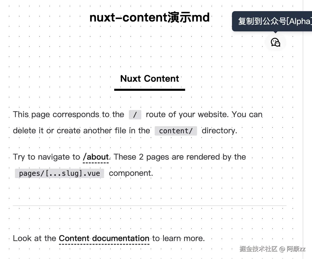 这里我把他的默认打开方式改为了 _blank ,并自定义了功能和样式。其他组件同理,都是可以自定义的。 查看NuxtContent中支持的组件