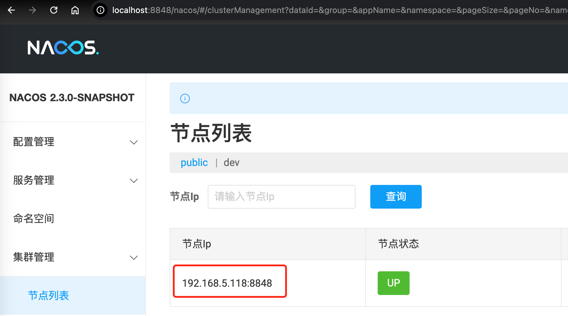 注意 nacos(基于 PC 本地下载的 nacos 源码构建启动的) 的 ip:
