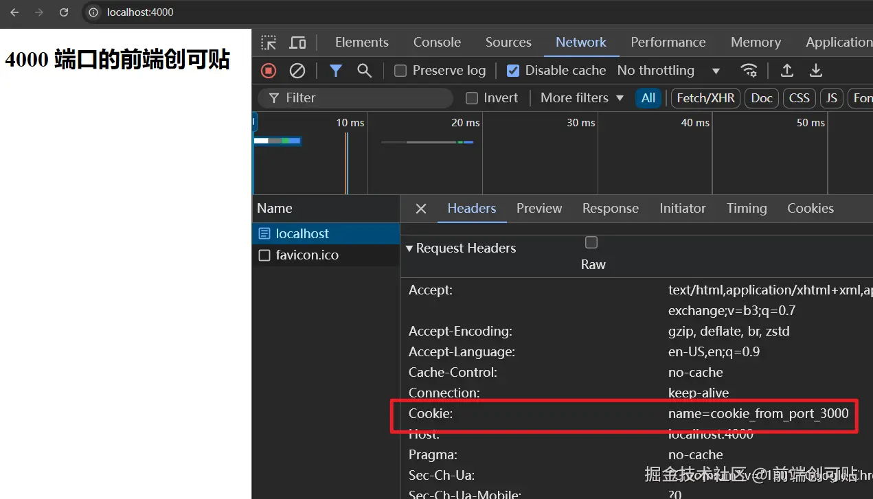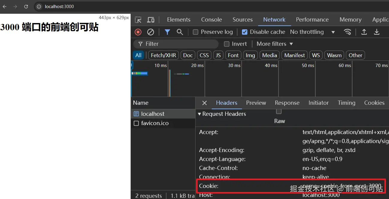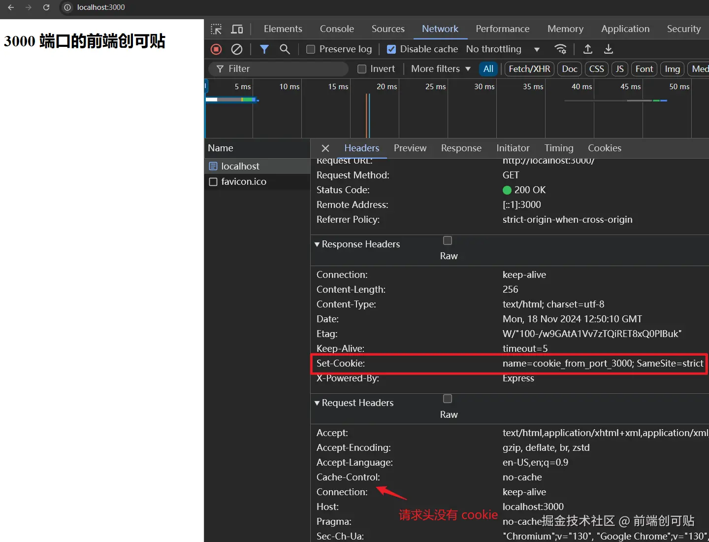 先来看看 3000 页面的响应头:
