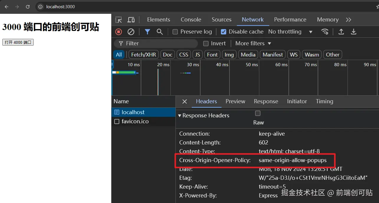 将 3000 端口 COOP 响应头设置为 same-origin-allow-popups:
