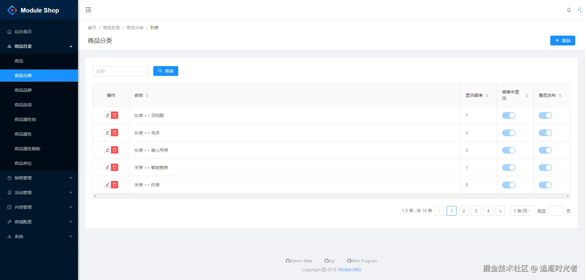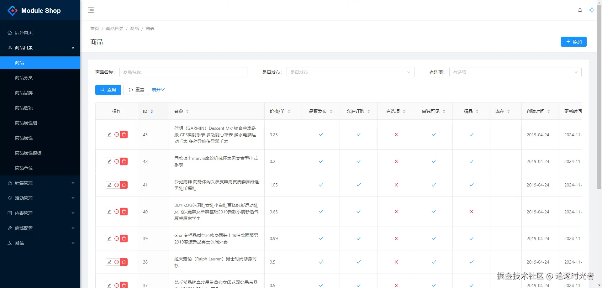 - 商品:分类、品牌、单位、选项(销售属性)、属性、属性模板、属性组等。