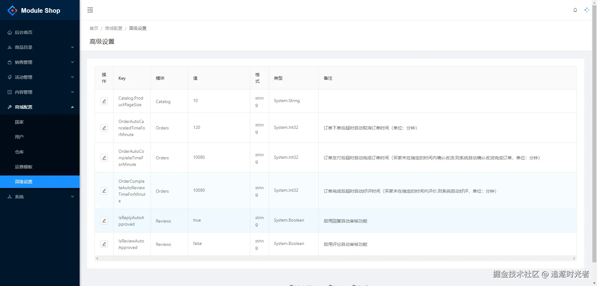 - 配置:国家、用户、仓库、运费、高级设置。
