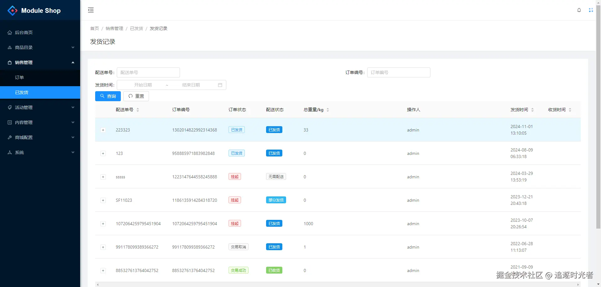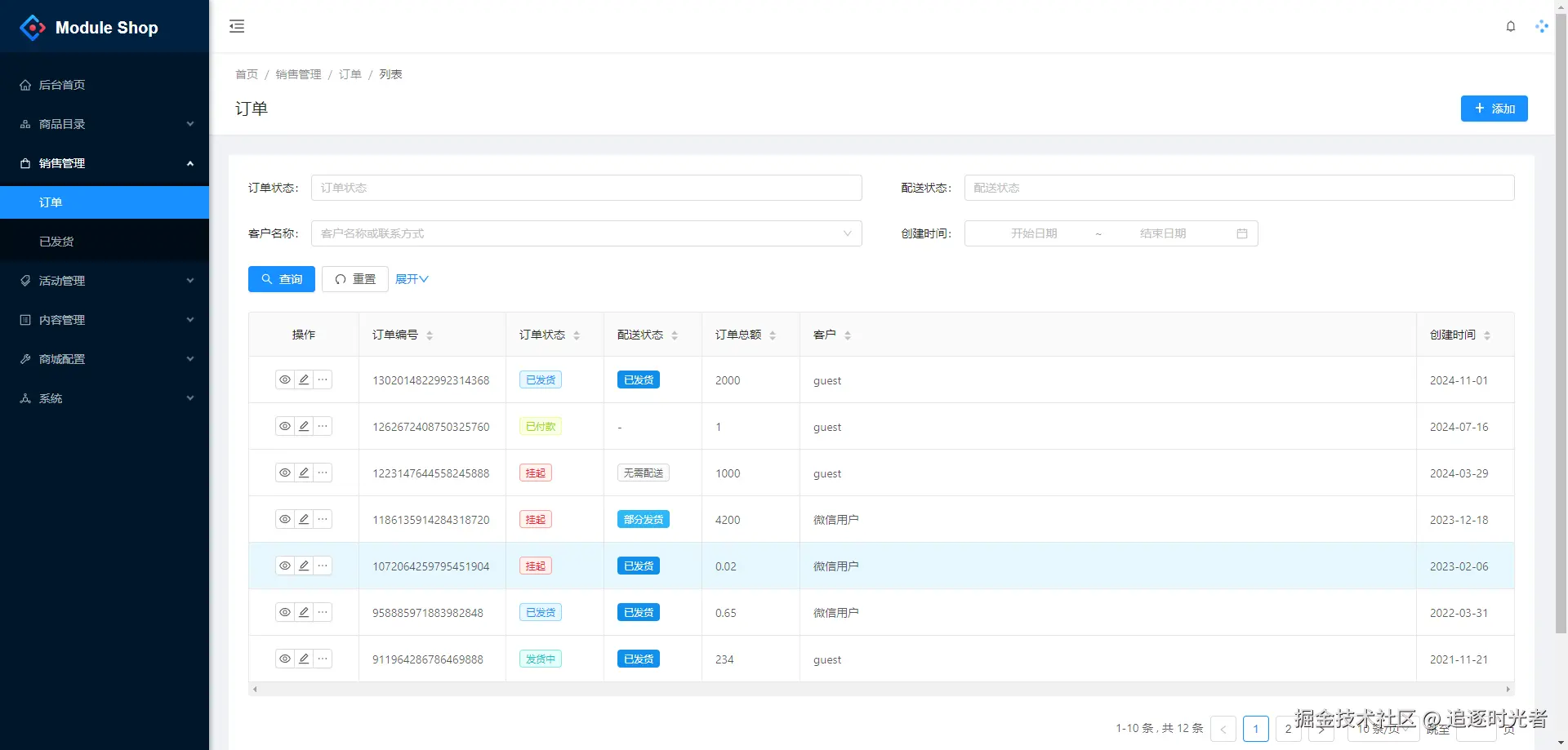 - 销售:订单、物流。