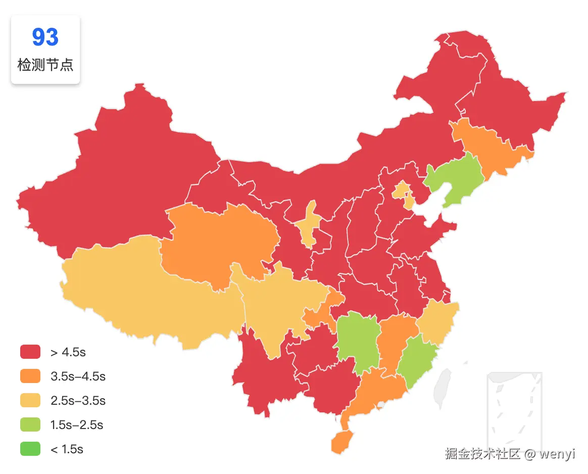 全球时延测量使用了多个工具验证,防止因工具选择出现偏差,下文展示图片测量工具为 CDNPerf。