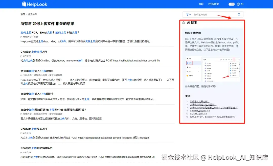 HelpLook集成的**AI搜索与问答机器人**功能,能够深入挖掘文档内容,提供精确高效的搜索解答。无论是内部员工还是外部用户,都能享受到即时响应的知识服务,提升工作效率与客户满意度。