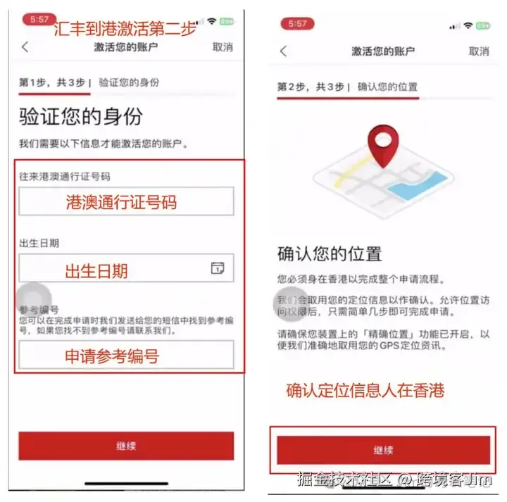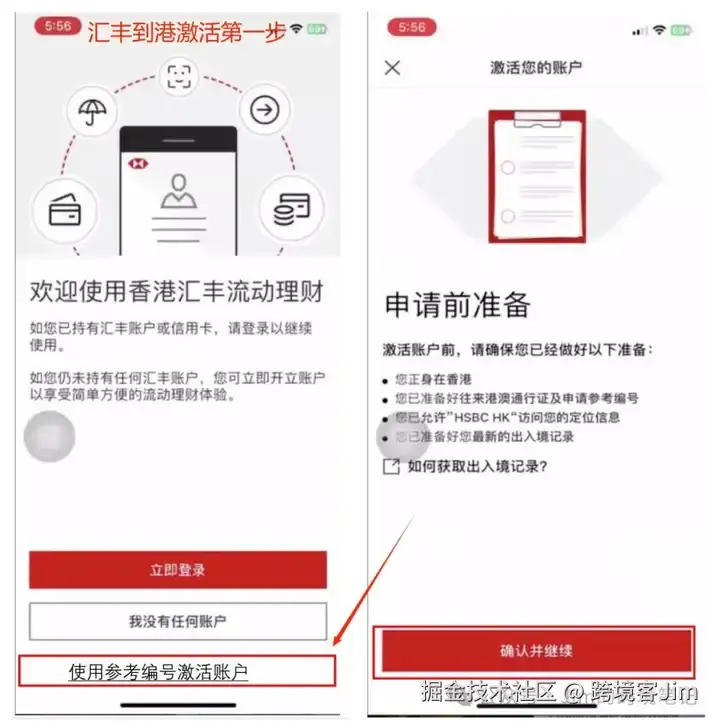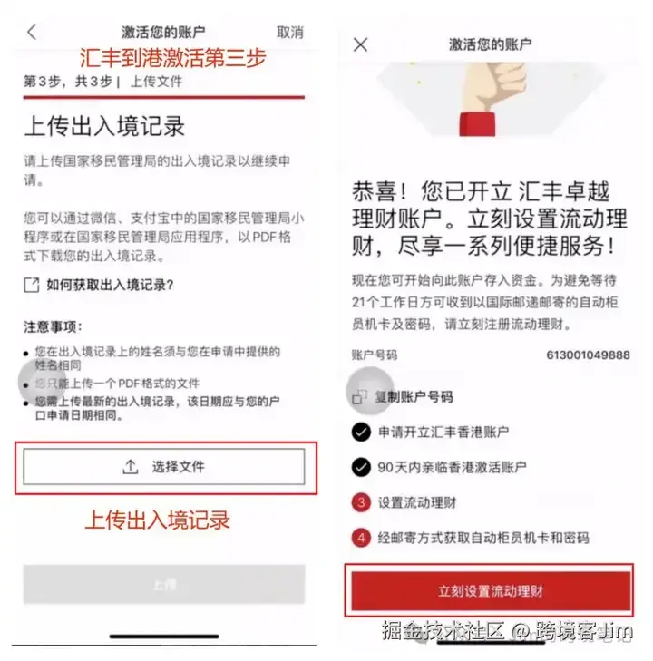 下方的激活操作流程来自群友@Keeping 发来的汇丰到港激活官方材料截图。