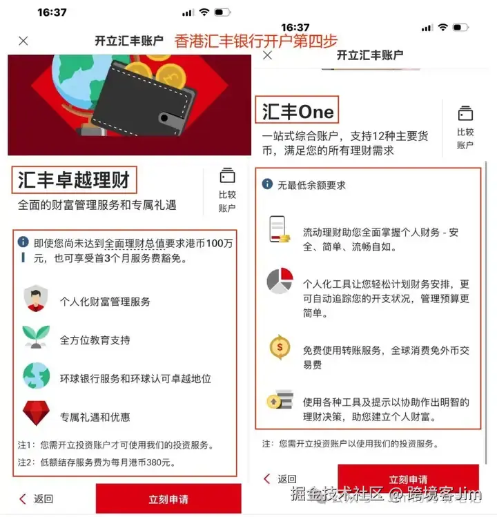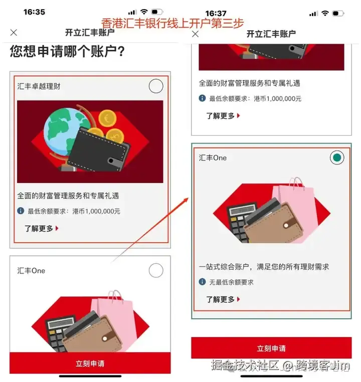可以点击了解更多,了解汇丰ONE和汇丰卓越理财账户的差别。