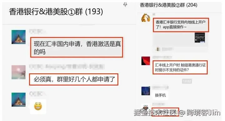 群内讨论香港汇丰支持线上申请,到港激活账户