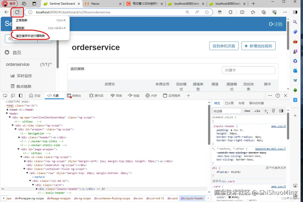 启动之后,我们进入Sentinel控制台,并且清除缓存
