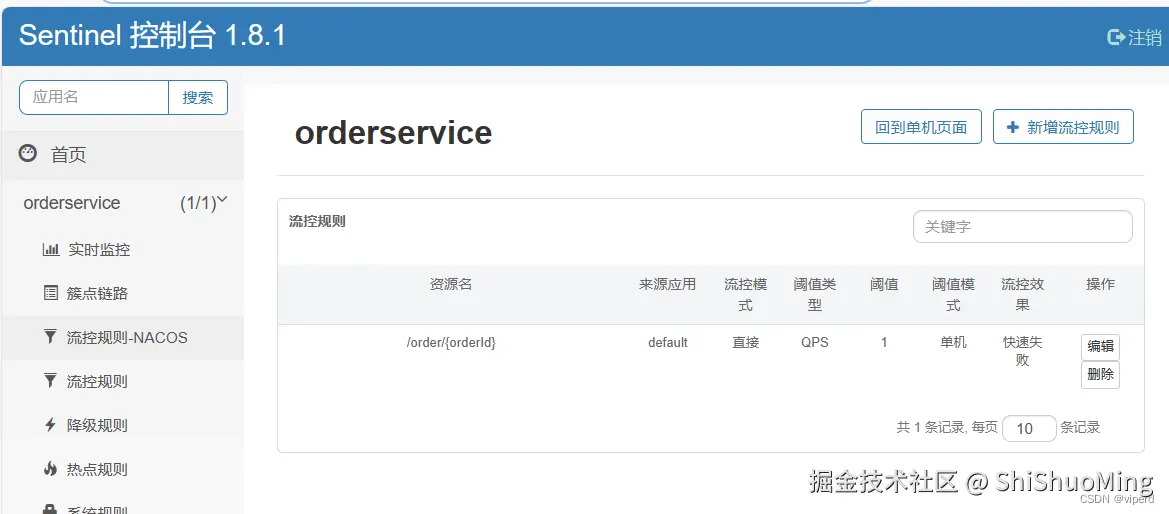 我们可以看到,左边菜单导航栏多了一个 流控规则-NACOS,这个是改动sentinel的源码加上去的。