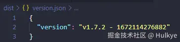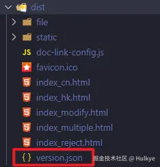 如进行开发环境打包构建,执行yarn build:dev,运行结束,生成的dist打包目录中则会新增【version.json】文件