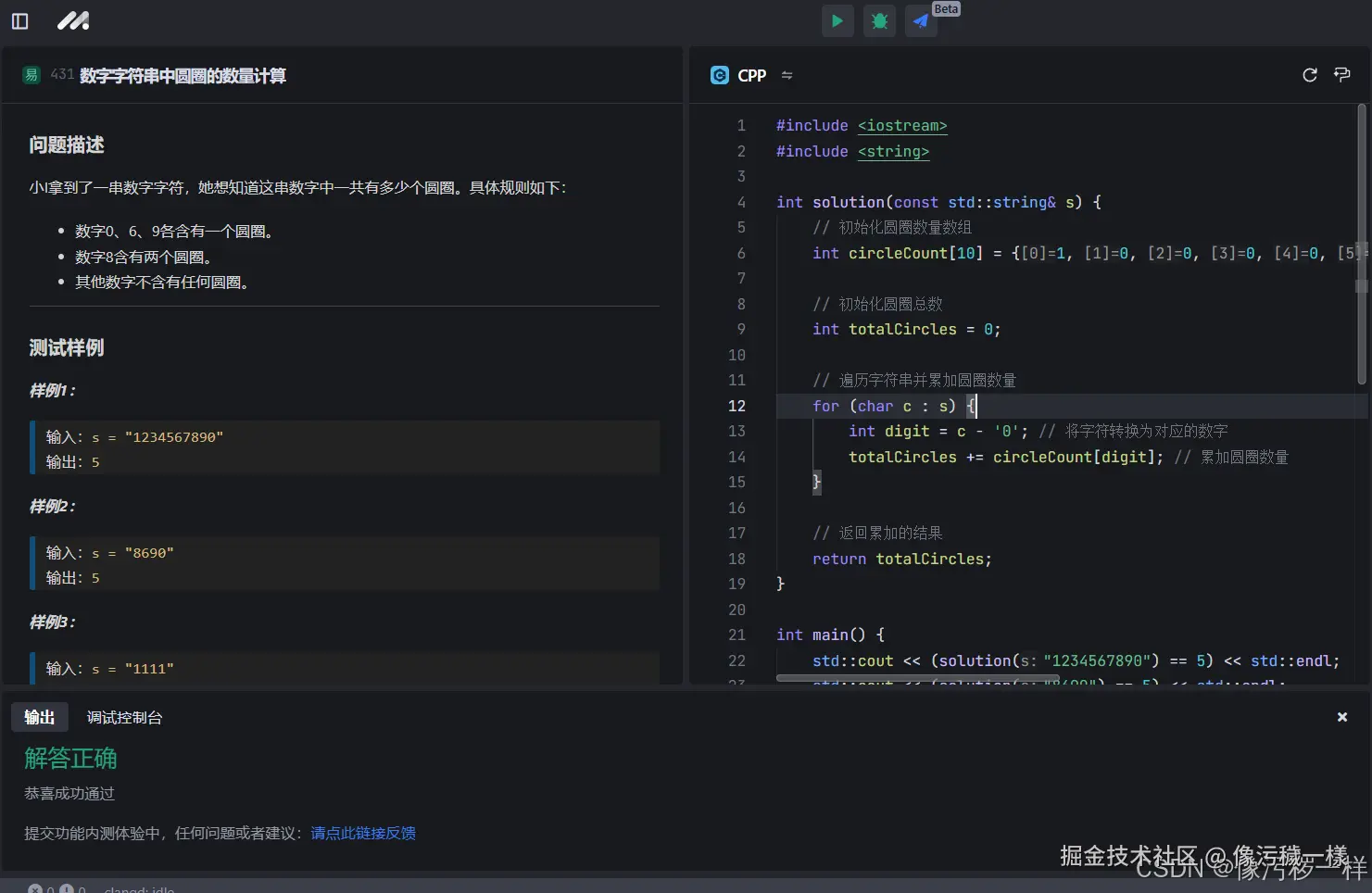 circleCount,其中circleCount[i]表示数字i的圆圈数量。 - 遍历输入字符串