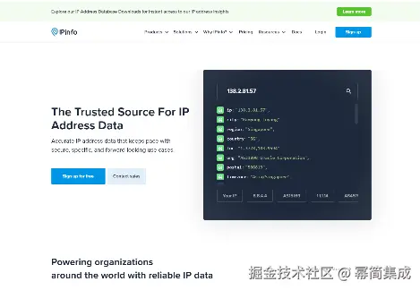 IPinfo的 IP 地理位置查询 API 适用于需要低延迟响应和高精度定位的应用。IPinfo 为用户提供多样化的定位数据,包括 IP 地址的详细地理位置、ISP 信息等,广泛应用于广告定向、流量分析等领域。