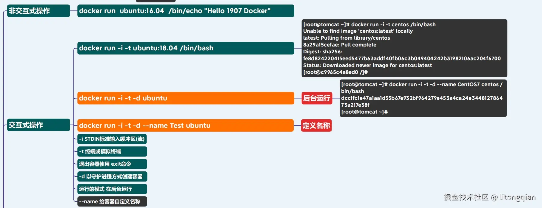 docker run 命令相当于create,start,两个命令,先从镜像中创建一个容器,执行start 运行容器