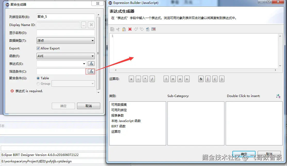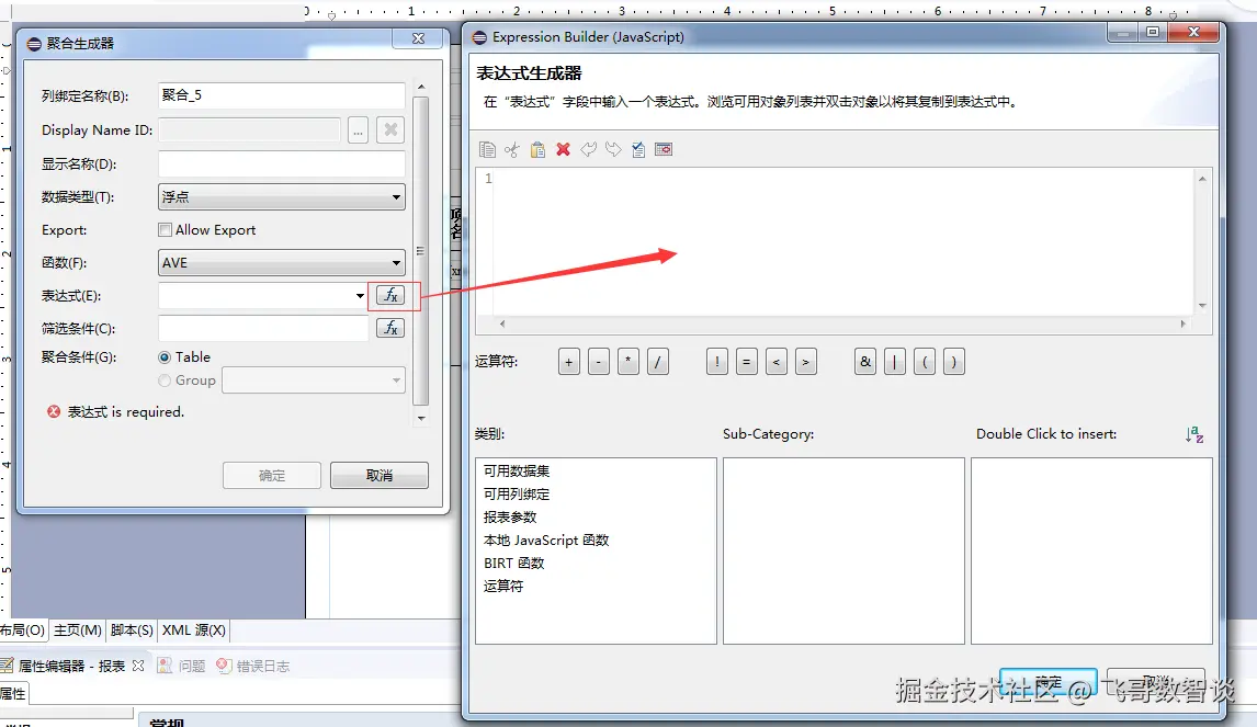 也可以点击右侧按钮,弹出表达式生成器窗口,输入表达式。