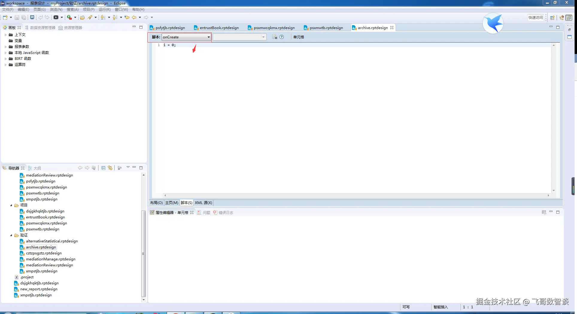 在上方脚本选项中,选择onCreate,在下方输入文本的地方输入i=0;