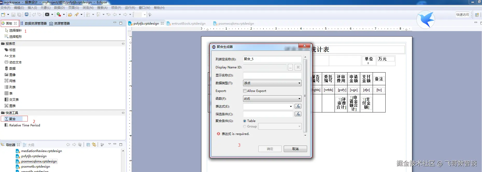 点击左侧的画板,找到聚合,点击聚合拖到需要聚合的一列,弹出聚合生成器。