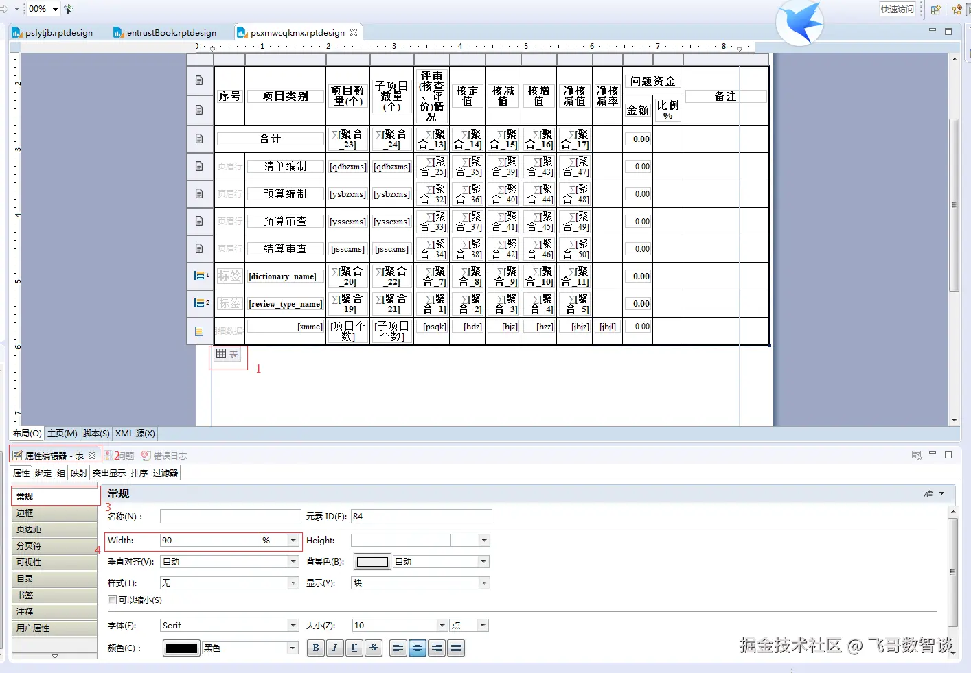 一般宽度设置都是设置百分比;首先打开报表,将鼠标移动到你要修改宽度的控件上面(标签不能设置宽度),会在左下角出现控件的名称,点击名称在下方的属性编辑器常规中找到‘width’,输入并修改后面的单位(%、像素、点等)。