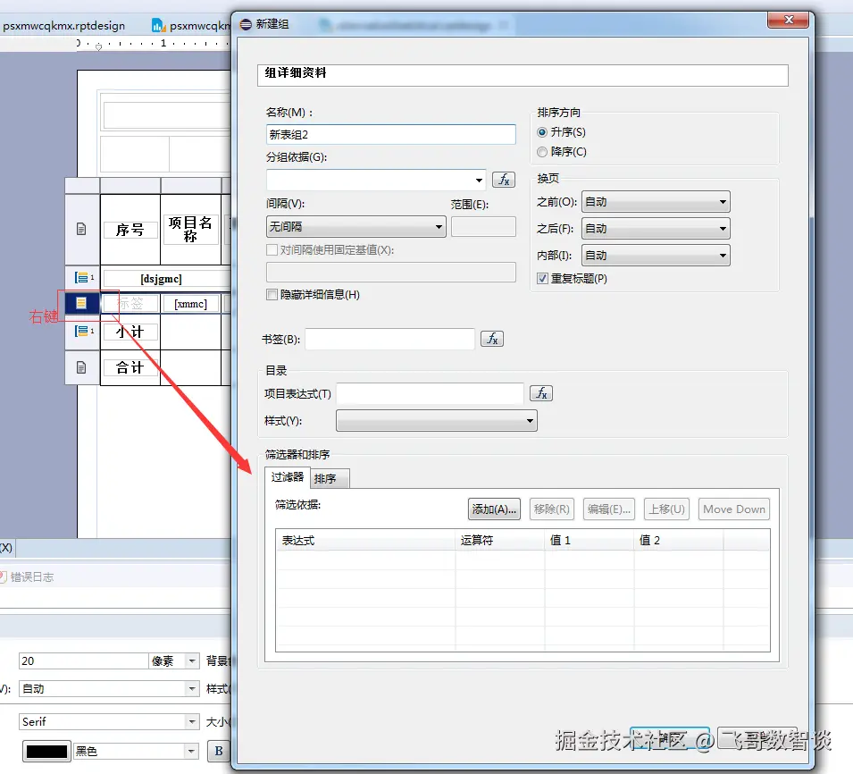 - 分组依据:选择数据中的那一列作为主体循环(可以下拉选择,也可以点击右侧按钮)