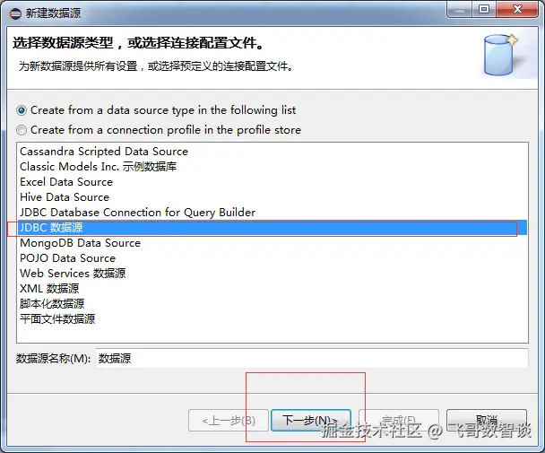 选择数据源类型(我们选择JDBC数据源)