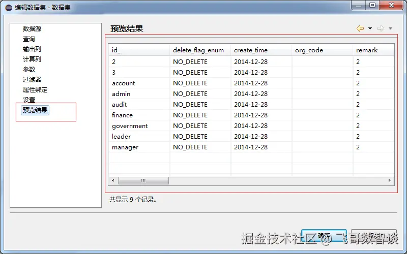左侧的查询就是刚才可以写sql语句的窗口,预览结果就是查看获取的数据,如果sql写的有错误它会报错