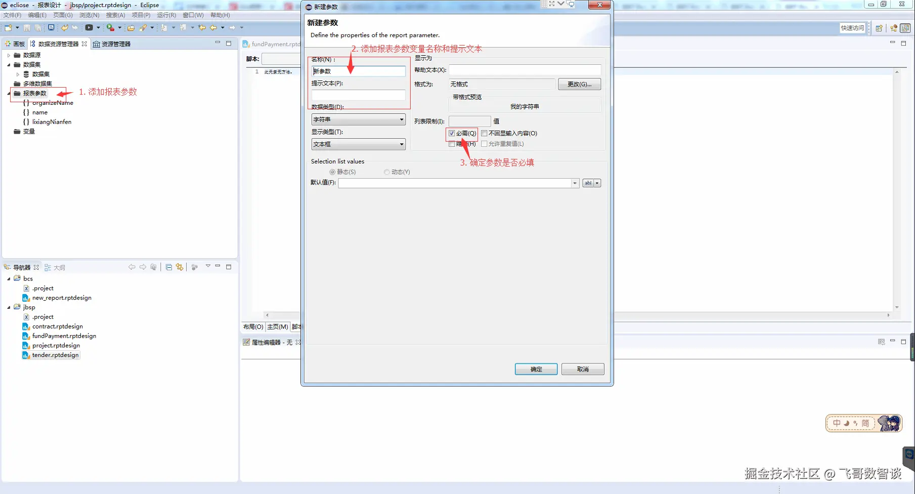 报表参数:查询参数的表现形式,使用它可以构建更灵活的报表。