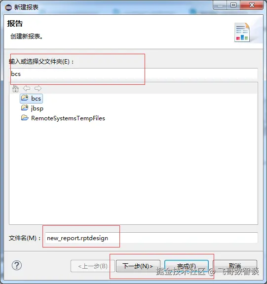 打开eclipse 在菜单栏点击选择文件----新建项目-----点开业务智能和报告工具-----报表项目, 点击下一步,输入一个项目名称,可以使用默认位置也可以换新的位置,点击完成,(如下图新建完成)