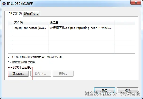 点击添加选择文件,打开一开始解压eclipse软件的路径找到mysql-connector-java-5.1.35.jar选择,点击确定