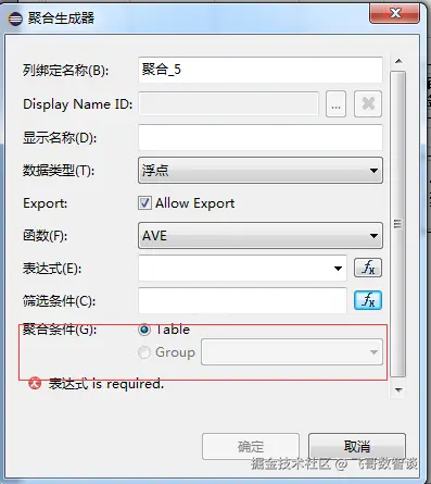 筛选条件需要添加表达式进行删选,满足条件的才能聚合。