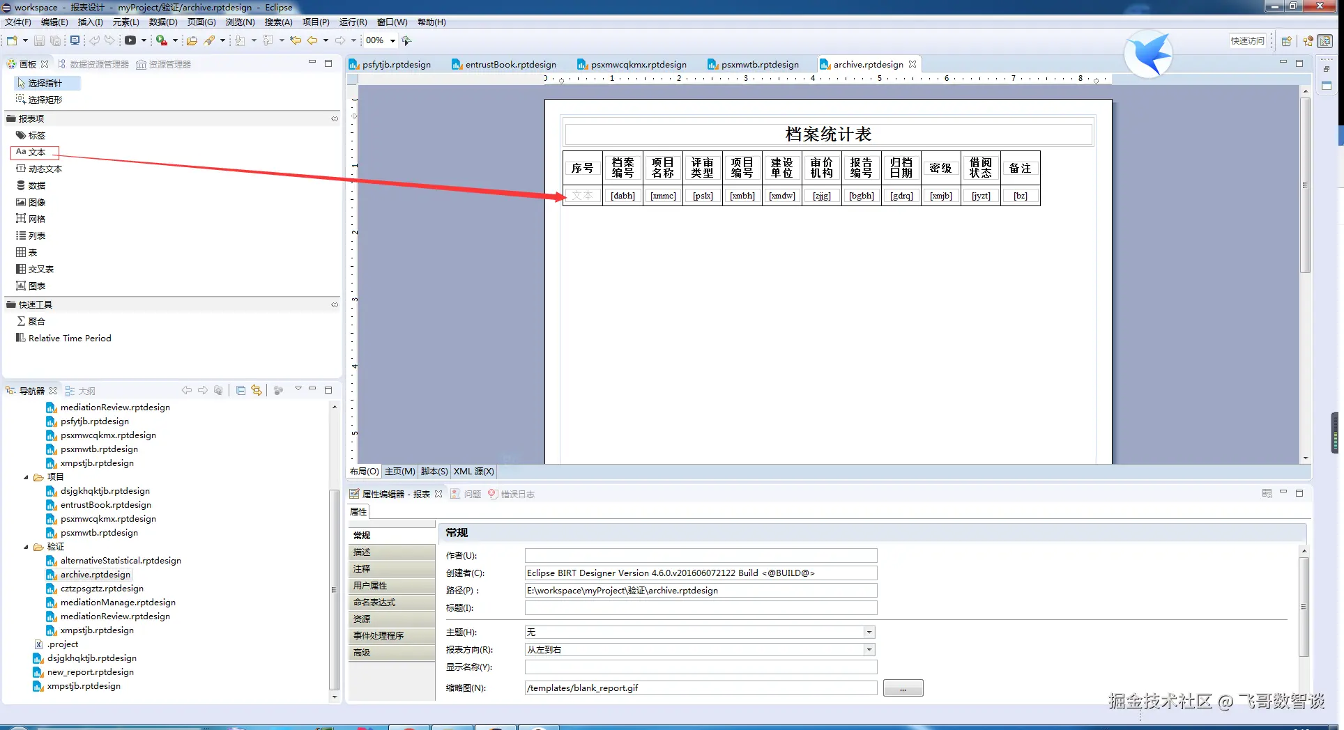 将报表加入到项目 找到编写好的文件 后缀名为.rptdesign 将它放到项目指定的文件下 在新建新的jsp 引入报表
