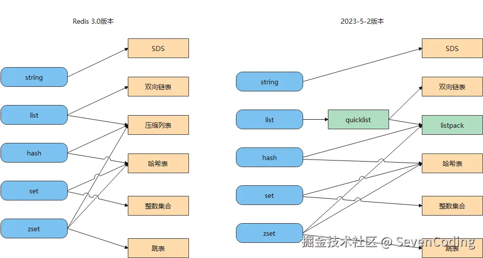 一般对象用 String + Json 存储,对象中某些频繁变化的属性可以考虑抽出来用 Hash 类型存储。