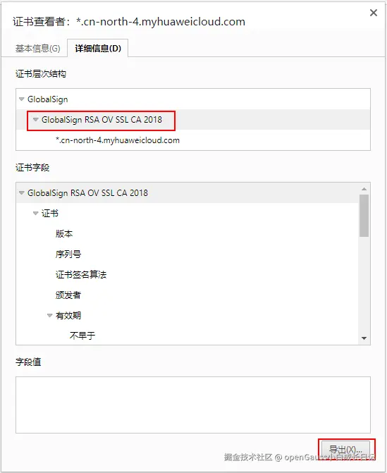 导出证书:在证书查看页面,可能会看到证书分为很多级,仅需要域名的上一级证书即可,选择该证书并单击导出,便可直接生成证书文件,即需要的证书文件。