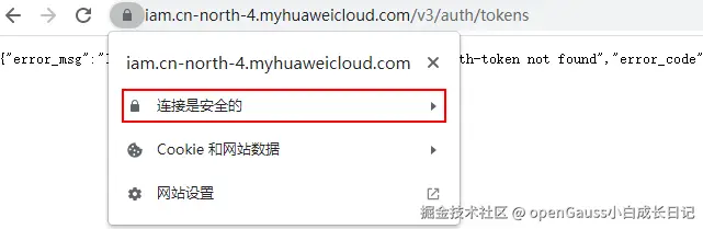 输入域名:打开浏览器,在华为云场景中,分别输入IAM服务器地址和KMS服务器地址,地址获取方式参见:生成主密钥阶段。