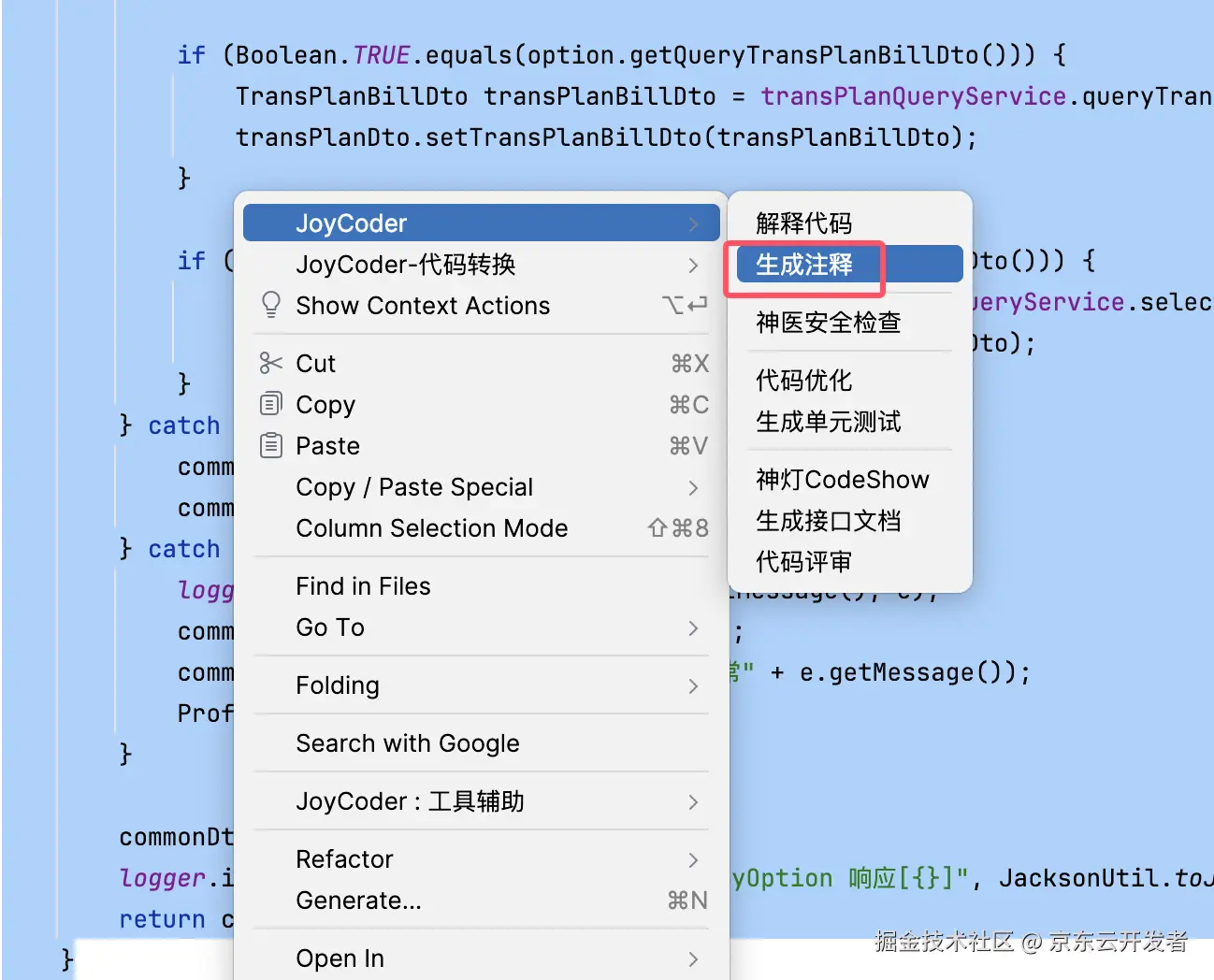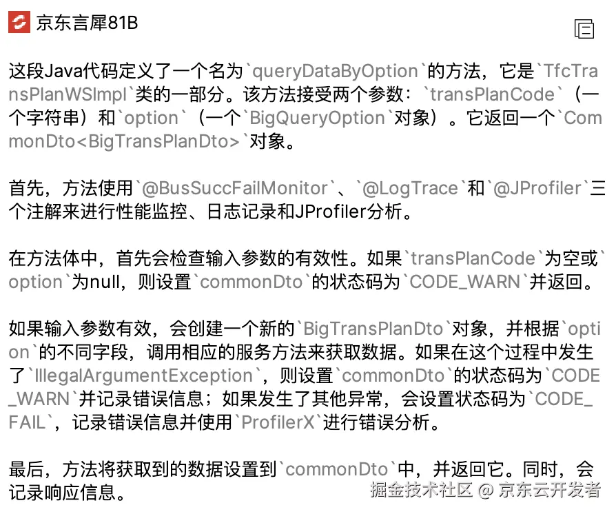 目前我们公司推出的大模型工具有joycoder、Autobot、aichat.jd,以joycoder为例,该工具可以解释所选中的代码,方便测试直观读懂代码。