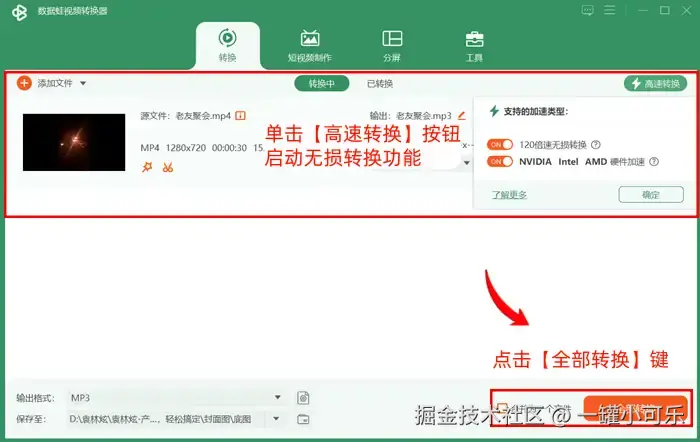 第三步:单击【高速转换】按钮,启动无损转换功能,然后点击【全部转换】键即可。