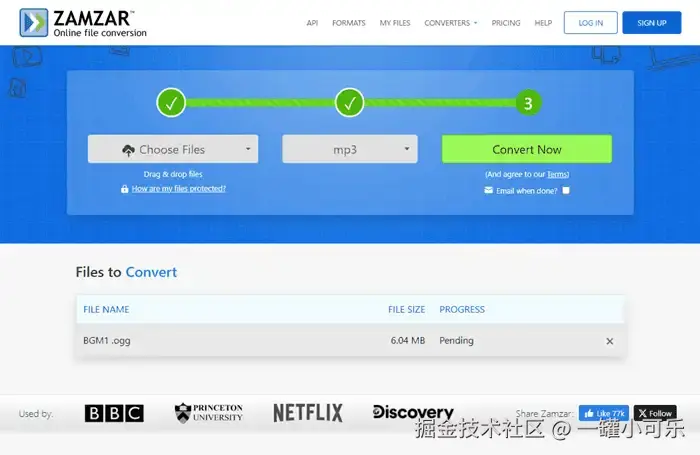 Zamzar是音频转换器免费网站,支持导入多种音频格式进行转换,转换操作简单快速,用户可以根据网站界面提示进行操作,十分适合初学者以及对音频格式转换有速度要求的用户。